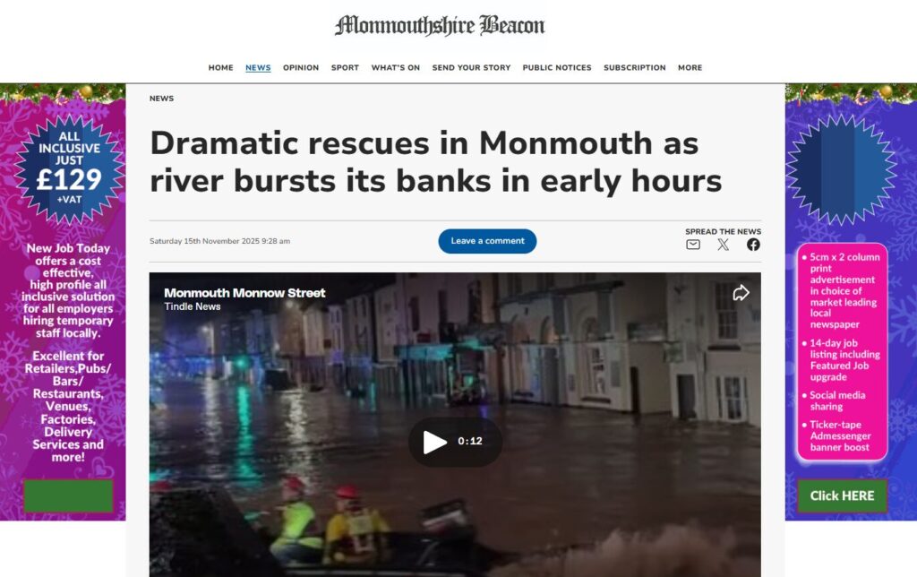 Senior editor Jon Gripton said: “Our strong heritage in trusted community news meant that when news of the floods broke, web audiences kept up to date with what was happening through our updates online for Monmouth and Abergavenny.