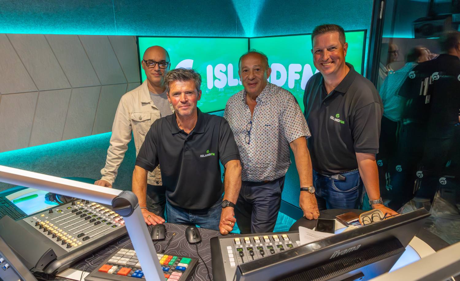 - Island FM presenters David Francis, Carl Ward and James Bentley pictured with Island FM founder Kevin Stewart